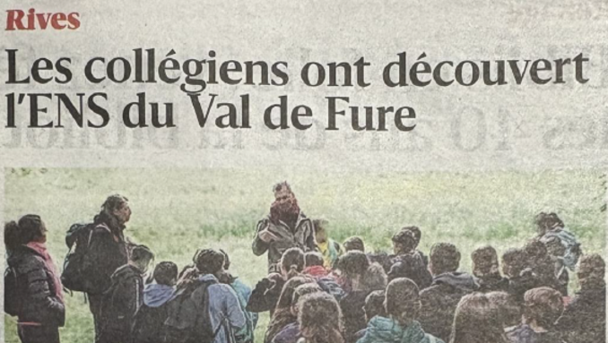 En septembre 2025 dans le cadre des programmes de SVT et de la sensibilisation à la biodiversité, les élèves de 6ème ont découvert la biodiversité du val de Fures. (en pj : l'article du Dauphiné Libéré qui a suivi une de ces sorties pédagogiques)