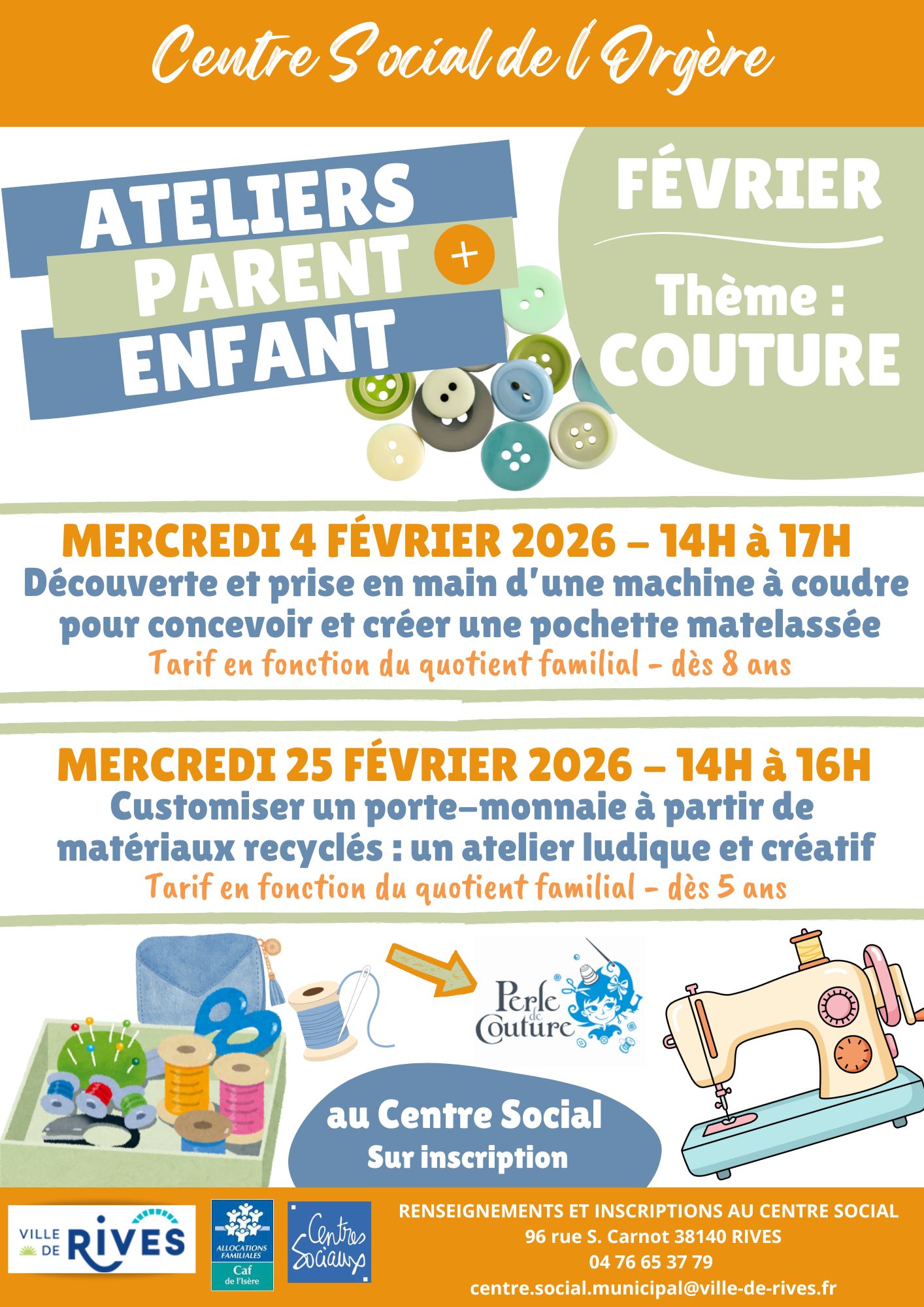 Centre Social de Rives - Atelier parent + enfant thème couture À venir